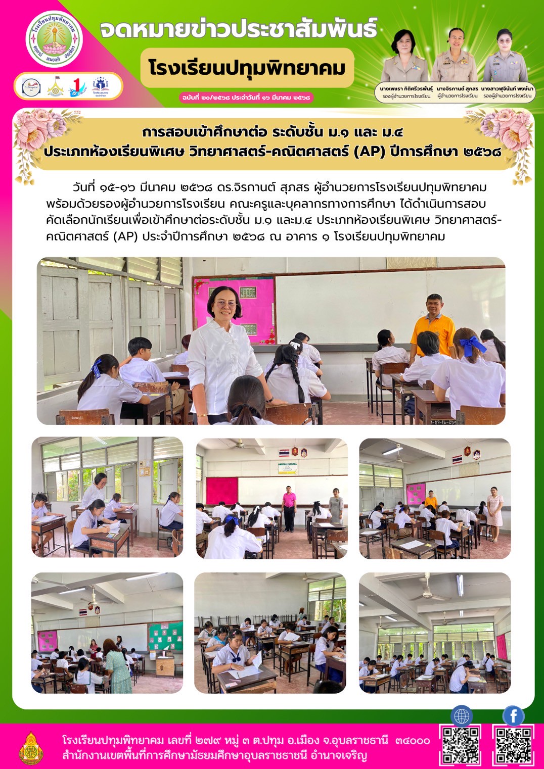 ข่าวประชาสัมพันธ์โรงเรียนปทุมพิทยาคม