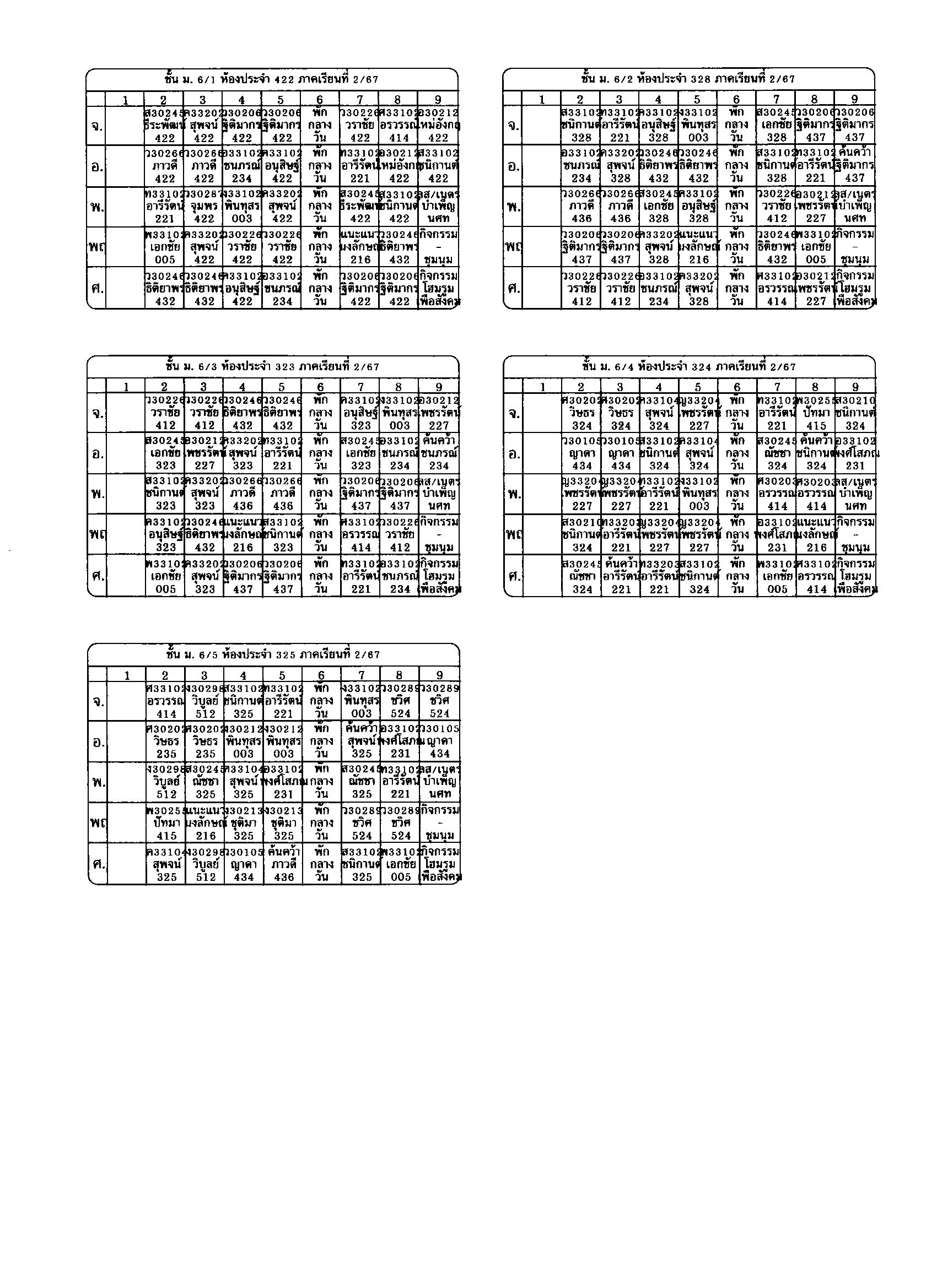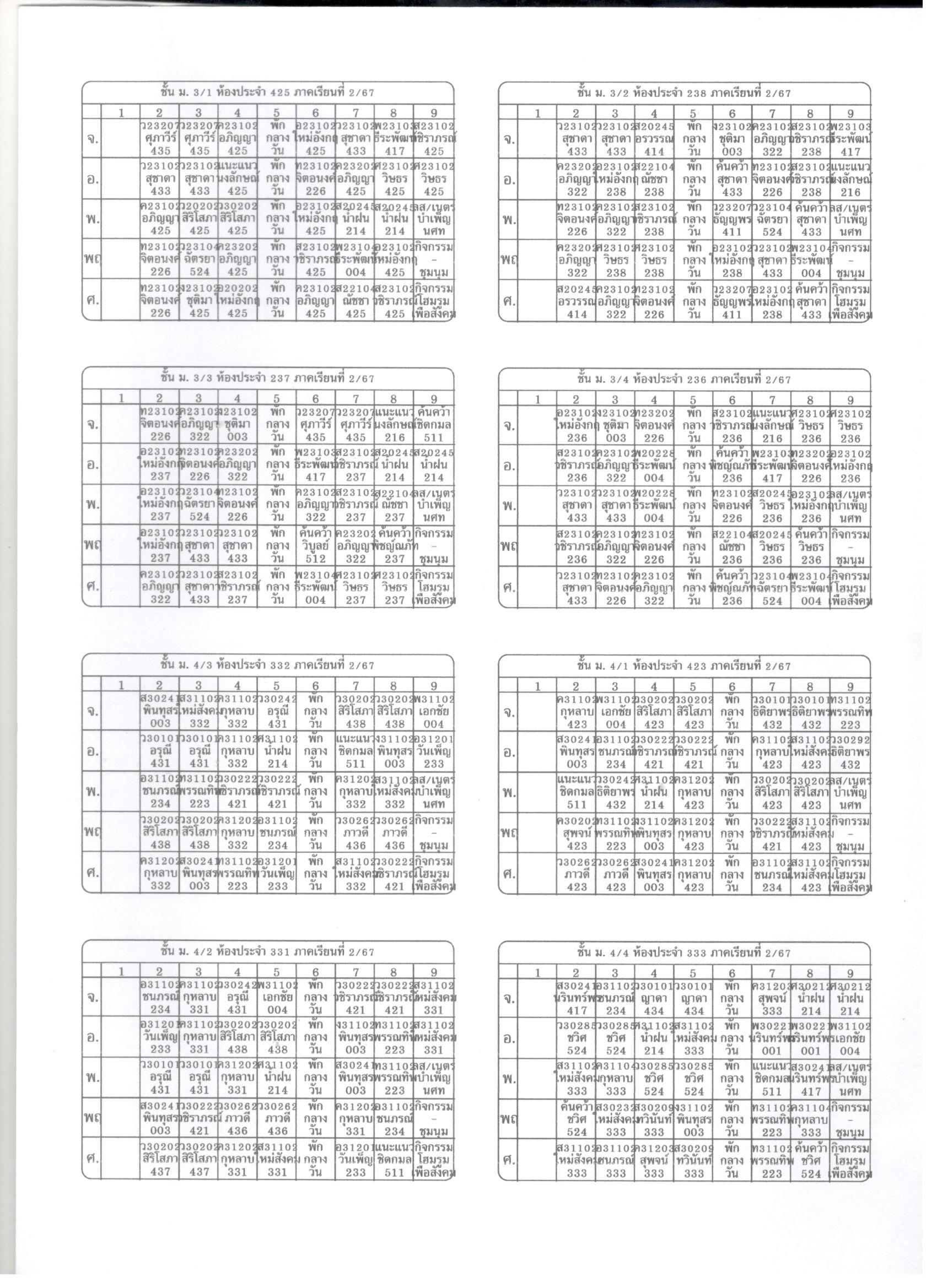 ตารางเรียน ภาคเรียนที่ 2 ปีการศึกษา 2567